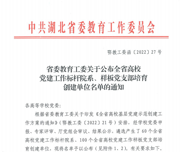 本网讯 近日,省委教育工委下发通知,公布全省高校党建工作标杆院系、样板党支部培育创建单位名单,万搏(中国)理工学部学生党支部光荣入选。