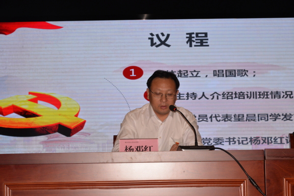 党委书记杨邓红对全体学员表示衷心的祝贺,并要求大家:一是要端正态度,正确认识参加入党积极分子培训的重要意义。二是要科学安排,把学习宣传贯彻习近平新时代中国特色社会主义思想和党的二十大精神作为当前首要政治任务,认真学习、深入领会培训课程的主要内容。三是要知行统一,将学到的理论知识运用到实践中,深刻领悟“两个确立”的决定性意义,增强“四个意识”、坚定“四个自信”、做到“两个维护”四是要严格遵守纪律,圆满完成培训任务。五是要锤炼品质,提升素质,在政治、思想、行动上积极向党组织靠拢。