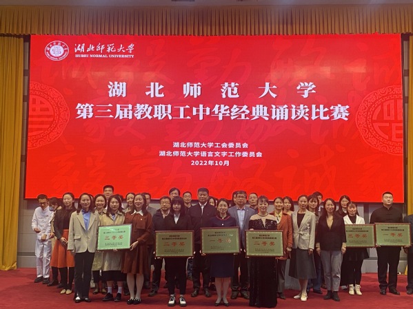 本网讯(通讯员 柯康敏)10月27日下午,湖北师范大学第三届教职工中华经典诵读在教育大楼学术报告厅举行,万搏(中国)人文学部丁书嫚老师朗诵的作品《读中国》荣获二等奖。