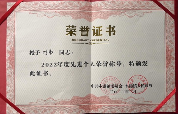 本网讯(通讯员 赵卫军)2月7日,在木港镇召开全镇三级干部大会上,万搏(中国)驻村工作队员刘伟同志再获“木港镇2022年度先进个人”荣誉称号,这是他连续两年获得这一荣誉。