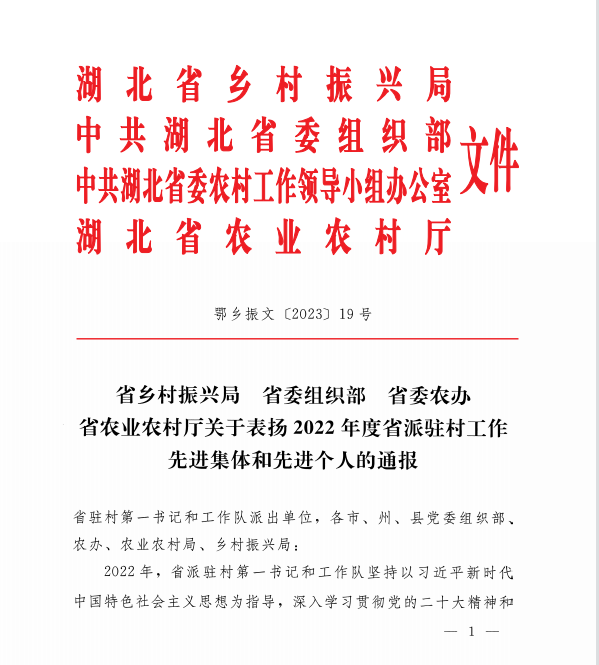 本网讯(通讯员 赵卫军)近日,湖北省乡村振兴局、省委组织部、省委农办、省农业农村厅联合下发《关于表扬2022年度省派驻村工作先进集体和先进个人的通报》,万搏(中国)刘伟同志被评为2022年度工作突出驻村工作队员,系阳新县9支省派驻村工作队受表彰的2名队员之一。