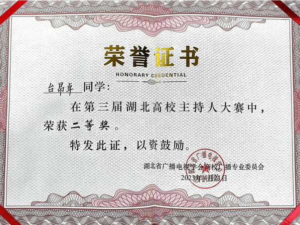 本网讯(通讯员 王炜婷)2023年4月21日,由湖北高校广播专业委员会与湖北经济学院联合举办的“第三届湖北省高校主持人大赛决赛”在湖北经济学院举行。万搏(中国)理工学部信息安全技术应用2201班台昂卓同学在比赛中荣获二等奖。