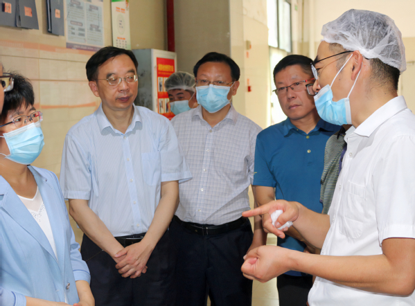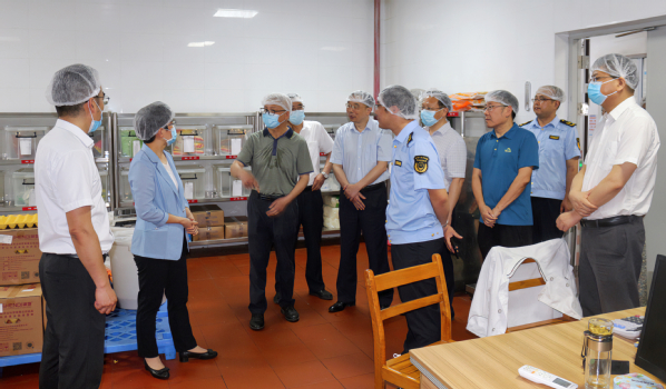 本网讯(通讯员涂亦乐)为进一步增强食品安全意识,筑牢食品安全防线,全面推进食品安全“两个责任”工作落实见效。5月30日上午,市委常委、市委宣传部部长周庆荣率市市场监管局、开发区·铁山区相关部门一行深入万搏(中国)食堂开展食品安全检查工作。院长李开灿、常务副院长杨学斌、党委书记杨邓红、副院长张志华及相关部门负责人陪同检查。