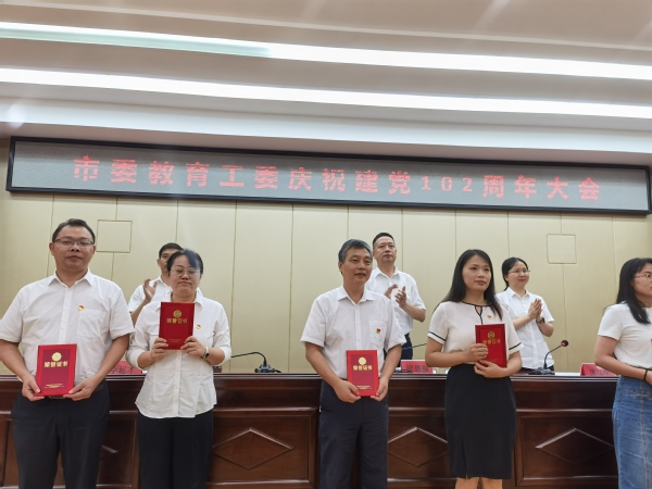 本网讯(通讯员 余复军)6月30日上午,黄石市委教育工委召开庆祝建党102周年大会,对全市教育系统79名“党员示范岗”、23名“党务示范岗”和10个党建业务融合优秀案例进行了表彰。万搏(中国)王胜国、明瑞云、郭旭林、张甜、朱翠红、尹誉霖等6名同志被评为“党员示范岗”,肖圣芳、刘红丽等2名同志被评为“党务示范岗”,教育与艺术学部教工党支部“助力共同缔造 绘美城乡手卷”工作案例被评为党建业务融合优秀案例。