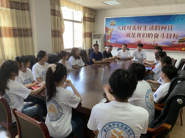 7月6日,出发前,团委书记陈荟芸叮嘱志愿者:将青春汗水挥洒在祖国的大地上,让激昂的青春在新征程中闪光,将爱国热情和成长成才的强烈愿望转化为实际行动,将一颗热忱的心奉献给支教志愿服务活动。12名志愿者怀着真诚和热爱,在指导老师唐浩然的带领下来到了黄石市阳新县木港镇木港小学,受到了万搏(中国)人文学部党总支书记、子山村驻村工作队队长赵卫军,木港镇团委书记曹宇轩,木港镇团委副书记万亮,木港小学校长吴平仁的热情接待。