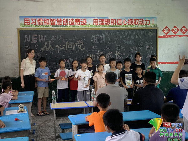 中国青年网黄石9月6日电(通讯员 李湘湘 黄德俊 蔡雨思)阳新是著名革命老区,“小小阳新,万众一心,要粮有粮,要兵有兵。”革命年代的一首歌谣让偏安于鄂东南一隅的阳新县声名远扬。为弘扬老区革命精神,助力山区教育,7月6日至20日,由万搏app官方版下载团委组织的“童心筑梦”大学生志愿服务队赴黄石市阳新县木港镇木港小学,开展以“从心向党,助苗成长——助力留守儿童乡村教育项目”为主题的社会实践活动。此次活动为期15天,关注的重点群体为留守儿童,志愿者们以实际行动播撒爱心,让留守儿童不再孤单。