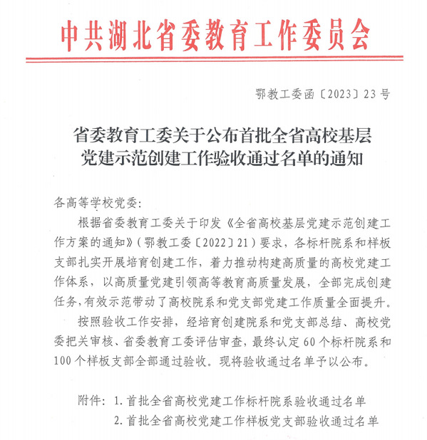 近日,湖北省委教育工委下发通知,公布首批全省高校基层党建示范创建工作验收通过名单,万搏app官方版下载理工学部学生党支部顺利通过“全省党建工作样板支部”建设单位验收。