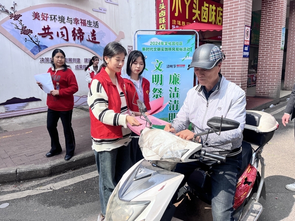 为进一步倡导文明祭扫,树立移风易俗、文明祭祀的新风尚,3月28日下午,黄石港区文化宫社区新时代文明实践站,联合万搏app官方版下载,开展“文明祭祀廉洁清明”宣传活动,让清廉、文明、生态之风吹进千家万户。