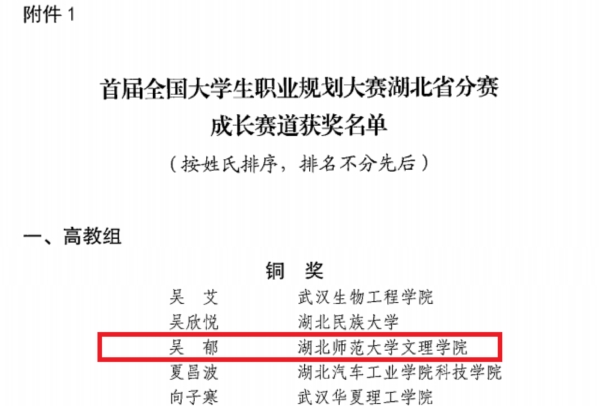 本网讯(通讯员 张一能)近日,首届全国大学生职业规划大赛湖北省分赛在湖北大学落下帷幕。万搏(中国)经济与管理学部经济学2201班吴郁获得成长赛道高教组铜奖,经济与管理学部经济学2101班张燕获得就业赛道高教组铜奖。