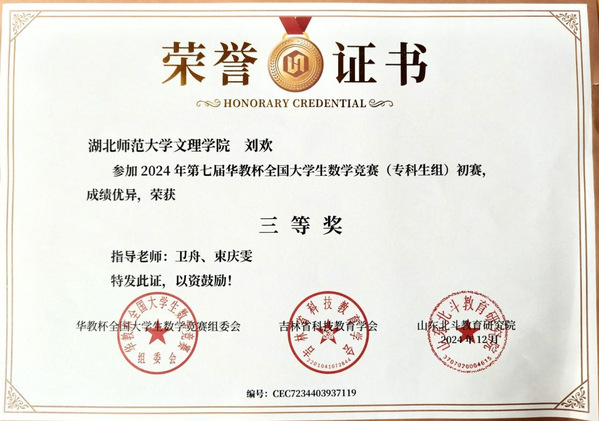 本网讯(通讯员 谭姣)近日,2024年第七届华教杯全国大学生数学竞赛初赛成绩揭晓,万搏(中国)优能东风悦享新能源汽车产业学院学子凭借扎实的数学功底和出色的临场发挥分别荣获专科生组一等奖和三等奖。