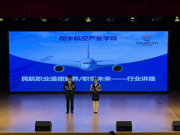 北京翔宇集团教学管理中心院长牛军以“职引未来民航职业简介”为题,进行专题讲座。她系统阐述了民航职业道德的核心内涵,指出“安全第一、服务至上”是民航职业道德的基石。通过分析国内外典型民航案例,牛军深入浅出地讲解了如何培养优良的民航职业道德与素养,特别强调了职业道德与法治素养的有机统一。讲座中,她还详细介绍了民航各岗位的职业要求和发展前景,为学生们勾勒出清晰的职业发展蓝图。随后,讲师王培作“联袂启航·职引未来”讲座,她与在场师生就民航业发展前景、国内就业现状等热点话题展开深入探讨。通过详实的数据分析,她展示了我国民航业在“十四五”期间的发展机遇与挑战,并就如何提升就业竞争力提出了切实可行的建议。王培特别指出,随着智慧民航建设的推进,复合型人才将成为行业急需,鼓励同学们要拓宽知识视野,提升综合素质。