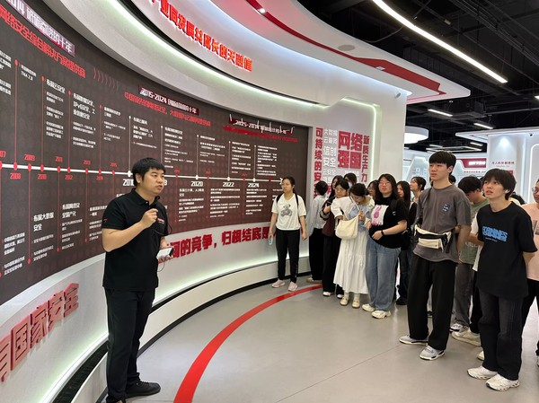 随后,师生前往国家网络安全中心基地参观学习。在专业讲解员引导下,师生系统了解了网络安全发展史,实地观摩网络安全攻防实验室。基地特别开设网安职业发展专题讲座,天融信资深工程师团队结合典型案例,分析行业人才能力需求,为学生职业规划提供专业指导。活动中,学生与工程师就网络安全国际形势、行业发展趋势及职业发展方向等问题展开深入交流。