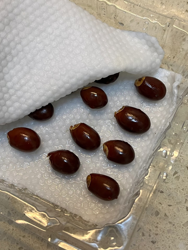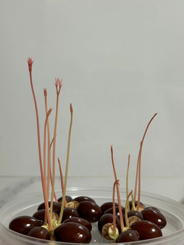 宿舍的窗台上,一个透明塑料盒里用湿润的纸巾浸泡着几颗荔枝核。它们原本只是果肉食尽后的残骸,褐黑坚硬,毫不起眼。搁在书桌一角。起初,它像沉睡的褐色石子,毫无生气。我并未期待什么,毕竟宿舍的窗台阳光有限,而我只是想看看,这几颗被遗忘的种子,能否在这样简陋的环境里醒来。