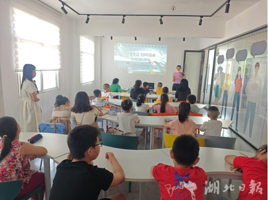 为确保托管服务安全有序开展,我们将安全教育作为首要任务,将“防溺水安全知识教育”作为暑假“爱心托管班”开班第一课。