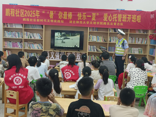 为增强社区儿童安全意识,提升其应对交通安全与溺水风险的能力,7月7日下午,黄石鹏程社区“童伴之家”联合社区居委会,在黄石开发区・铁山区民政局、中国乡村发展基金会指导支持下,携手区交警大队开展“安全大冒险乐园”主题活动,40名社区儿童在互动体验中学习安全知识。
