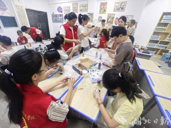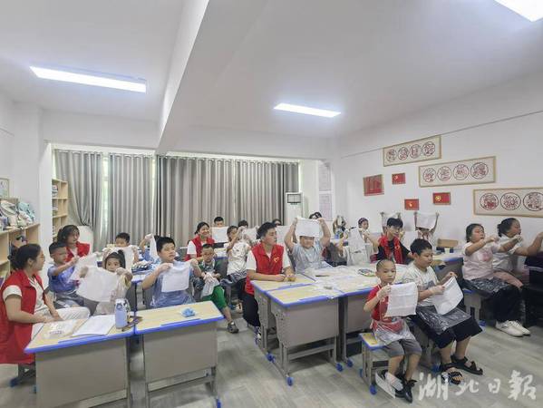湖北日报客户端讯(通讯员徐岚)7月8日下午,亚光社区联合万搏app官方版下载理工学部智慧启航志愿服务队,为暑期爱心托管班的孩子们开展了一场“非遗进课堂——扎染体验”活动。