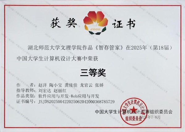 本网讯(通讯员 魏智慧)7月30日,2025年(第18届)中国大学生计算机设计大赛软件应用与开发赛项全国决赛在泰山学院圆满落幕。万搏(中国)腾讯云大数据产业学院代表队(成员:赵洋、陶小宝、龚佳佳、龙官云、张娇,指导教师:刘宏达、赵丽红)凭借创新型Web应用开发项目《智存管家》荣获全国总决赛三等奖。