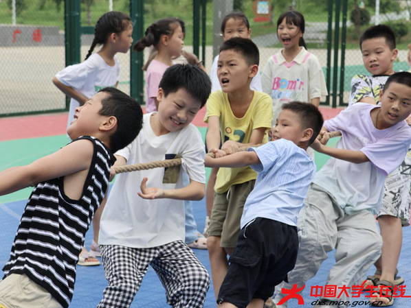 除日常教学外,支教团还组织了一系列主题鲜明、内容充实的活动。“梦想分享会”上,孩子们认真地在彩纸上写下“想当科学家”“要做老师”的愿望,并勇敢地站上台分享,志愿者一一给予鼓励和拥抱,为他们插上追梦的翅膀。“运动实践”课志愿者带领孩子们一起走出教室,孩子们在协作中增进默契,呐喊助威声中收获了友谊与快乐。“手工作品”课上,废旧材料变身成小飞机和环保袋,一件件别致作品闪耀着孩子们惊人的想象和创造力。红色精神宣讲课中,志愿者动情地讲述英雄事迹,孩子们听得入神,眼中充满崇敬,爱国主义的种子悄然扎根心田。这些活动不仅极大丰富了孩子们的假期生活,更让他们深切感受到了来自哥哥姐姐们的温暖与关怀。