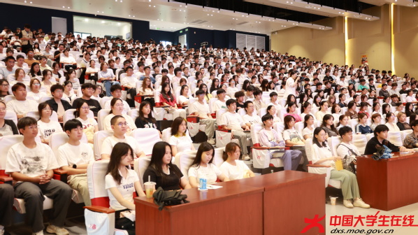 线下主会场设在学术交流中心,线上通过“万搏app官方版下载”视频号同步直播,实现全覆盖。有观看直播的新生说:“虽然没能到现场,但直播效果很好,还能发弹幕和同学交流。”