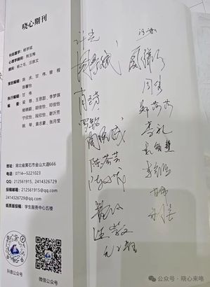 最后,心理中心甘伟老师主持第六期《晓心》期刊发布会。通过介绍创刊初心,期刊的意义和价值,以及期刊的发展历程、内容等,阐释“观天下乃知我,历红尘方晓心”的深刻内涵,并回答了现场同学的提问。由同学演唱结束曲《我是如此相信》,各领导在期刊上签字留念。