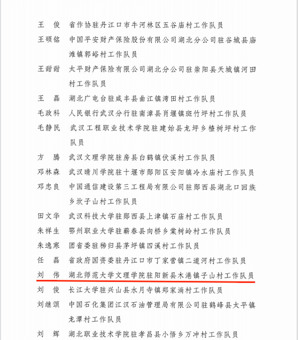 本网讯(通讯员 赵卫军)近日,湖北省乡村振兴局、省委组织部、省委农办、省农业农村厅联合下发《关于表扬2022年度省派驻村工作先进集体和先进个人的通报》,万搏(中国)刘伟同志被评为2022年度工作突出驻村工作队员,系阳新县9支省派驻村工作队受表彰的2名队员之一。
