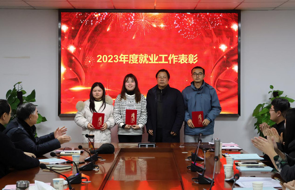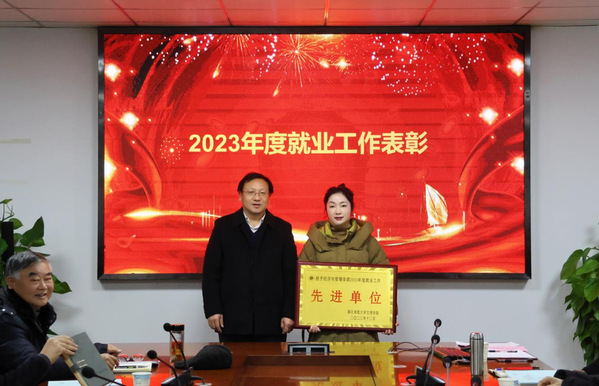 会议对2023年度毕业生就业工作先进集体和个人进行表彰。学工部部长汪崇文宣读《关于表彰2023年度毕业生就业工作先进集体和先进个人的决定》湖文学〔2023〕16号,经济与管理学部获得2023年度“就业工作先进单位奖”,辅导员吕彩云、姜希望、高悦获得2023年度“就业工作先进个人奖”。党委书记杨邓红为就业工作先进集体颁发奖牌,党委副书记杨之毛为就业工作先进个人颁发获奖证书。