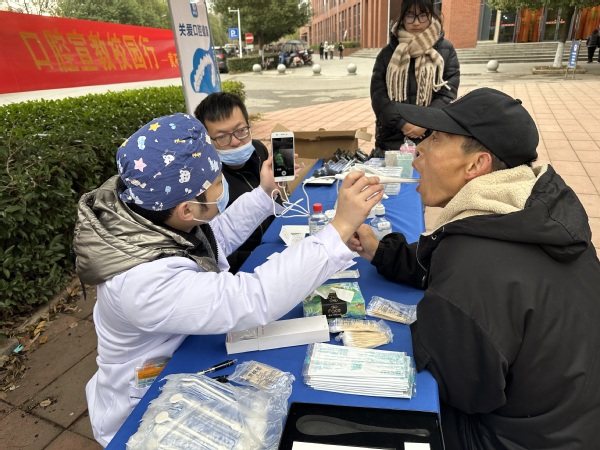 义诊现场,医护人员通过专业仪器为就诊的师生免费进行口腔健康检查,询问牙齿日常状况、分析口腔问题,并进行了一对一的专业解答,为大家提供切实可行的健康指导和治疗建议。同时,现场为师生们详细介绍了牙齿龋坏、牙龈炎、牙齿缺损、多生牙、牙周炎等常见口腔问题及防治方法,分享了如何正确刷牙等口腔健康小常识。活动现场气氛热烈,近400名师生参加了义诊。