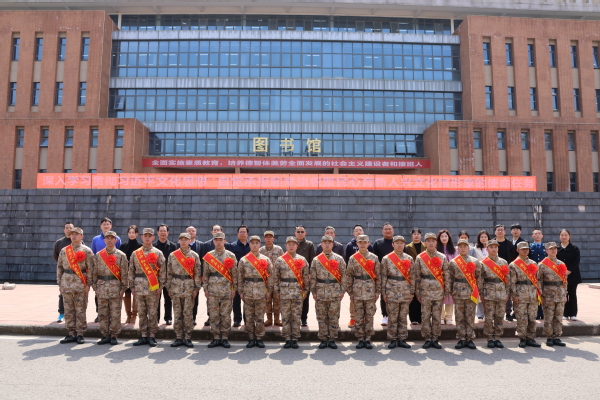 退役大学生代表张顺在发言中分享了军旅经历,激励即将踏入军营的同学们,进入部队后要忠诚与勇敢,为人民放好哨,为祖国站好岗。他强调,作为一名军人,要时刻保持一颗赤子之心,牢记初心和使命。