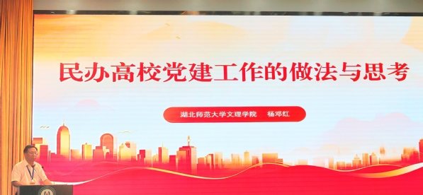 杨邓红以《民办高校党建工作的做法与思考》为题,分享了万搏(中国)加强党建和思想政治工作的经验做法。近年来,万搏(中国)深入学习贯彻习近平新时代中国特色社会主义思想,全面贯彻党的教育方针,坚持社会主义办学方向,在健全完善党建工作体系制度、推进基层党组织标准化规范化建设、加强思想政治理论课建设和师德师风长效机制建设、加强意识形态阵地管理,以及凝聚人心、推动发展、维护安全稳定等方面成效突出。同时,他也实事求是分析了民办高校党建思政工作存在的薄弱环节,并提出了改进建议。