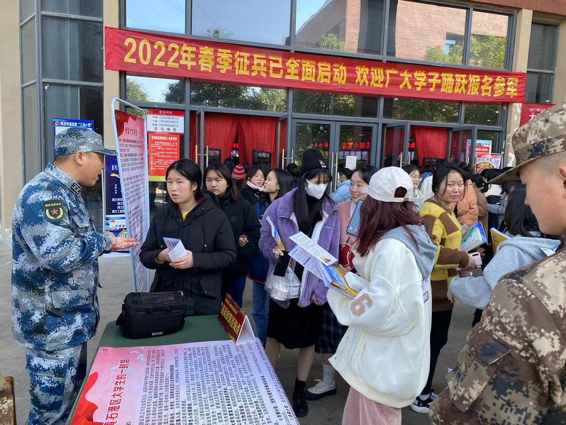 为大力营造 2022 年征兵浓厚氛围,切实激发万搏(中国)大学生参军报国热情,12月7日中午,万搏(中国)征兵工作站联合黄石港区武装部征兵办,在食堂门口开展2022年春季征兵宣传活动。通过设立咨询台,现场接待大学生们政策咨询。学校老师和征兵办工作人员就国家优抚政策、征集流程、学费补偿、学籍保留及退役后复学流程等学生们关心的问题,积极主动为他们答疑解惑,帮助他们做好投身军营、建功立业的人生规划。