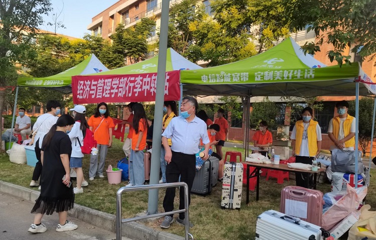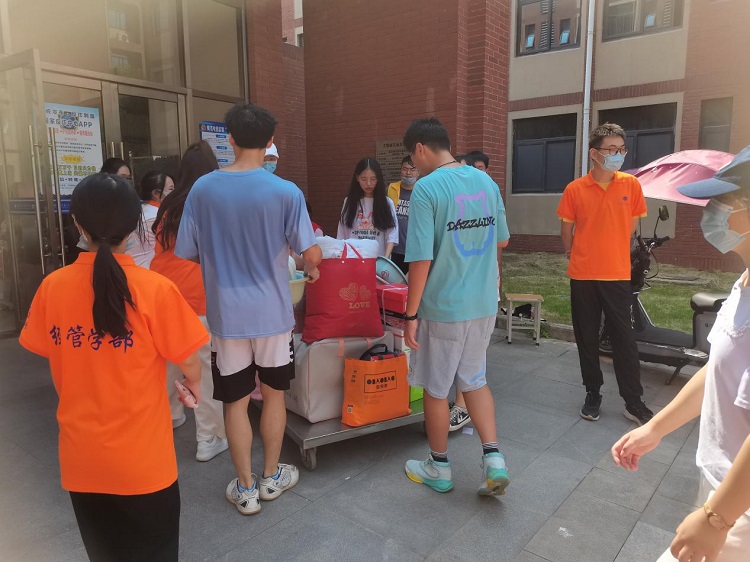 疫情防控尤当紧,为迎接新生的到来,万搏(中国)做足了准备。学校在火车站、汽车站设立接待点,安排了大巴车将新生与家长送至学校;在校内迎新联合办公室内设置了各学部迎新点,在2号实验楼与行政楼之间设置了各学部行李中转站。在经管学部主任商树松的领导下,学部在校内各点均配备了迎新教师和志愿者。学生和家长一到达学校,校门口的志愿者们便立刻上前迎接,引导他们去迎新联合办公室学部迎新点办理报到手续,办理完手续再帮助新生把行李搬运上接驳车送至宿舍楼,宿舍楼下早已有志愿者们等候,帮助新生将行李点对点搬至各宿舍。经管学部的志愿者们身着亮丽的橘红色志愿者服装,他们不怕炎热,不辞辛苦,校门口、学部迎新点、行李中转站、学生宿舍楼下等地方都流动着他们忙碌的身影,那一抹橘红色为学校增添了一道亮丽的风景线。