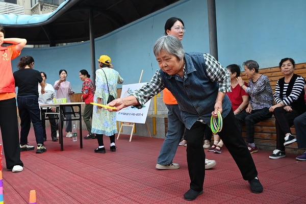 此次活动以“青春伴夕阳”趣味运动会的形式进行,大学生志愿者们带领老人们一起进行了投壶、套圈、吹乒乓球等趣味游戏。充满乐趣的互动活动,让老人们身心愉悦,乐在其中,活动现场处处洋溢着欢声笑语