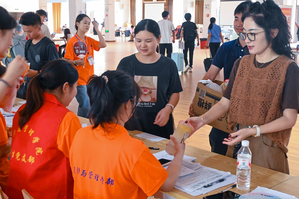 学院领导高度重视迎新服务工作与师生健康安全。活动当日,经济与管理学院党总支副书记罗铭带领全体辅导员,前往各志愿服务点与迎新岗位,亲切慰问了在酷暑中辛勤忙碌的志愿者与工作人员,并将提前准备的冰镇饮用水等防暑降温物资逐一送到大家手中,对他们不辞辛劳、热情奉献的付出表示充分肯定与感谢。