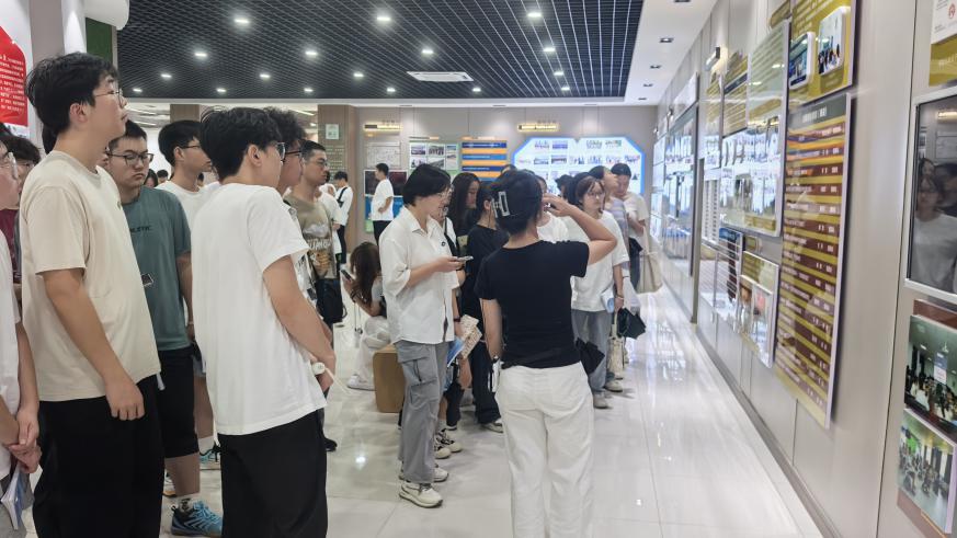 首站来到承载学校发展历程的校史馆。在讲解员的引导下,同学们回顾了从创校伊始的艰苦耕耘到今日成就的辉煌历程。一幅厚重而生动的发展画卷缓缓展开,墙面上的老照片与陈列的奖章奖杯,无声诉说着学校严谨求实、奋发进取的传统,深深打动了在场每一位同学。