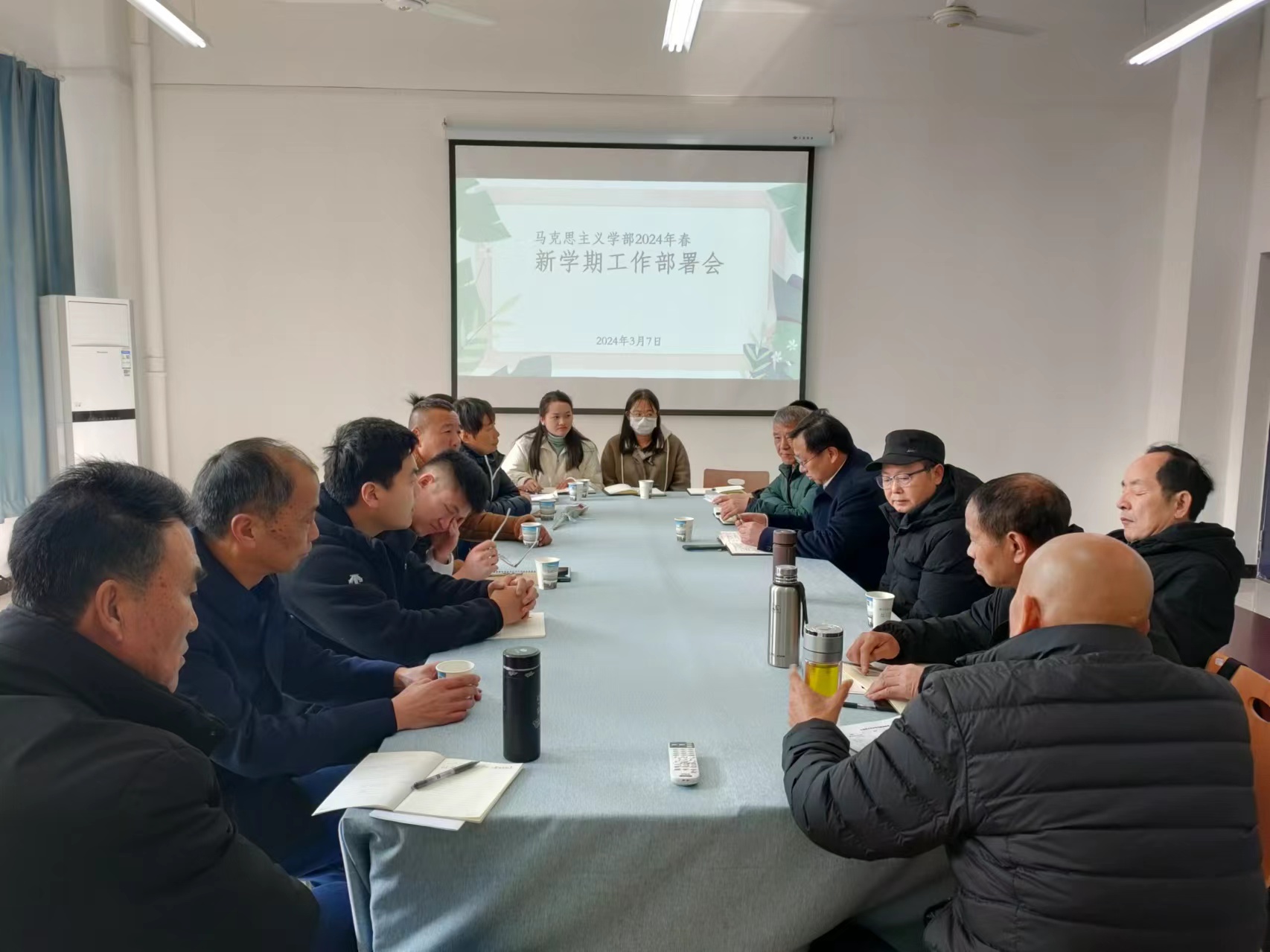 2024年3月7日下午,马克思主义学部在3号实验楼208会议室召开新学期工作部署会,参加此次会议的有校党委书记杨邓红和学部全体教职工,学部主任周青山主持会议。