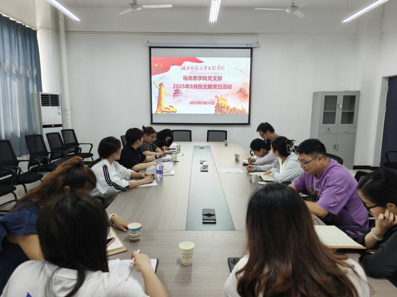 2025916日下午,马克思主义学院党支部在3号实验楼208会议室开展了“弘扬抗战精神 担当时代使命”主题党日活动,活动由支部书记姚柳同志主持。