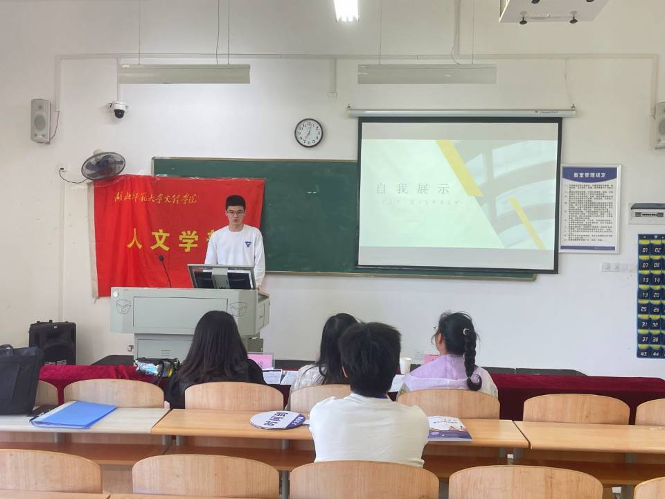 在主持人介绍比赛规则后,比赛正式开始。参赛选手依次进行限时三分钟的个人展示和限时五分钟的即兴演讲,并由在场的三位评委老师进行打分。所有选手展示完毕后,评委老师结合现场评分和简历内容进行简单的讨论过后,评出最后的获奖情况。