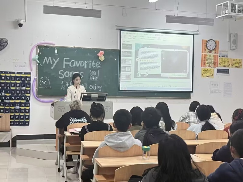 为了提高人文学部学生学习英语的兴趣,引导他们积极主动学习英语,人文学部开展了英语角活动。此活动分为英语专业和非英语专业两个类别。英语专业共组织了两期活动,第一期活动主题为Favorite songs(最喜欢的歌曲),第二期活动主题为Tell Chinese stories(讲中国故事),活动形式为各班选手依次展示,每人分享一首歌,带领大家欣赏歌曲,了解歌曲背后的故事。非英语专业班级主题为See China’s historic sites(看中国名胜古迹),各班展示时采取一人独讲或两人合作的方式,带领大家欣赏中国不同的名胜古迹。