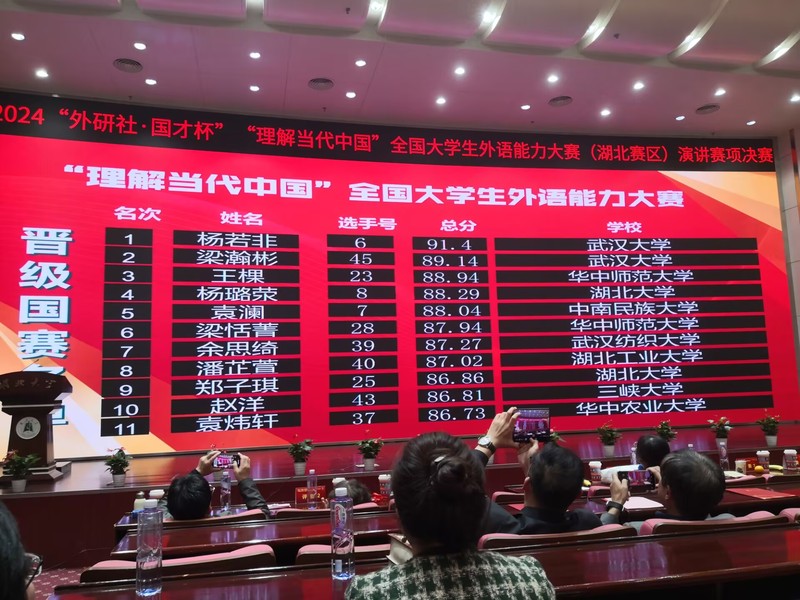 2024年11月9日,万搏(中国)人文学部邓薇薇老师带队三位选手赴湖北大学参加“外研社-国才杯〈理解当代中国〉演讲比赛省赛”,人文学部英语专业苗盛同学在邓老师、兰铭瑶老师全方位悉心指导和陈杨等老师配合指导下,过五关斩六将,比赛出色发挥,经过首轮即兴演讲激烈PK,从湖北省200多名选手的省赛初赛中脱颖而出,冲进了省赛决赛,这已经是万搏(中国)该项比赛的历史性突破。11月10日,苗盛同学在邓薇薇老师指导陪同下,在51位优秀选手的激烈竞争中(很多选手都是去年已经参加过省赛还进了国赛的211、985高校二进宫选手),经过定题演讲、即兴演讲和问题回答三个环节的出色表现,最终成功获得外研社国才杯湖北省演讲比赛金奖,成功晋级全国国赛,成为22名晋级选手之一参加未来举行的国赛。苗盛同学是湖北省所有民办高校中唯一晋级国赛的选手,创造了民办高校奇迹!此次比赛是我国演讲比赛最高赛项。另外,商务英语专业詹雄滨同学也发挥出色,获得了省级铜奖。