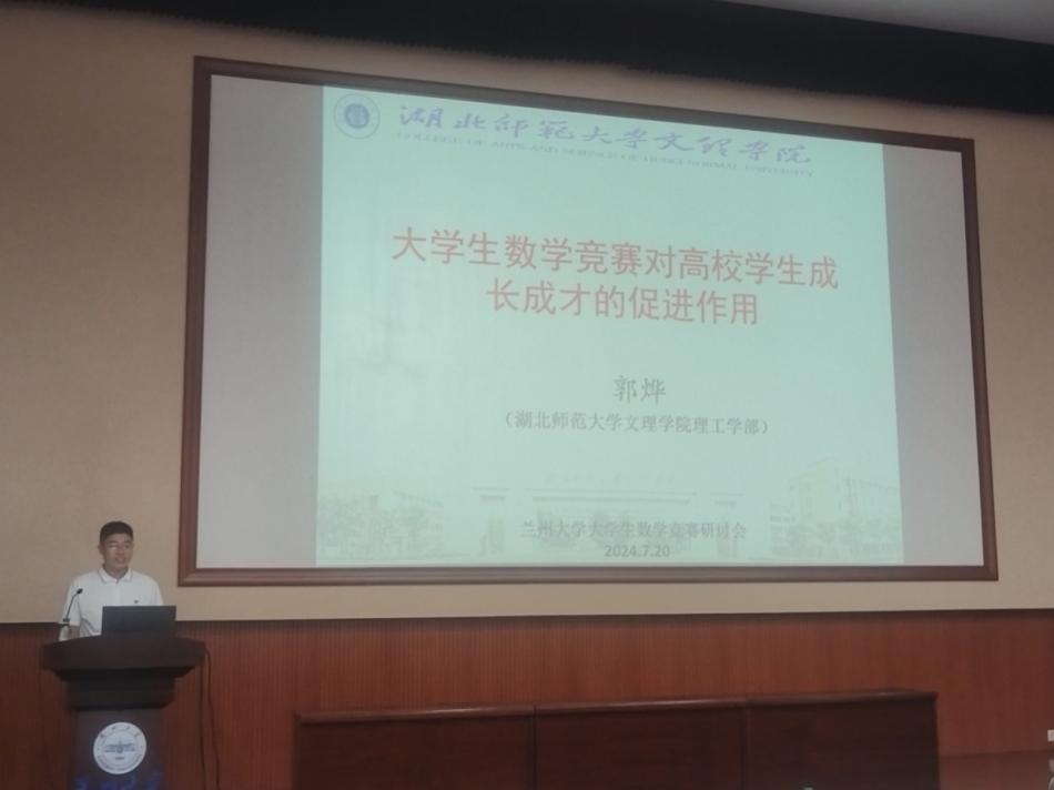 2024年全国大学生数学竞赛暑期研讨会于2024年7月18日至22日在甘肃省兰州市举行,本次会议由中国数学会和全国大学生数学竞赛工作组主办,兰州大学承办,兰州大学数学与统计学院和甘肃省数学会协办。万搏app官方版下载数理通识教研室主任、第十五届大学生数学竞赛黄石地区负责人、第十五届大学生数学竞赛优秀组织者郭烨老师应邀参加会议。