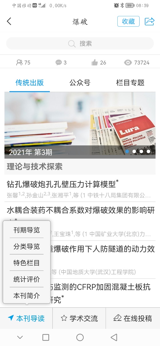 超星期刊是与读秀学术搜索对接的期刊检索平台,可以通过分类查找期刊,也可以通过检索期刊名、出版地、关键词找到需要的期刊,期刊内容实时更新。在左下角“本刊导读”里,“刊期导览”可以找到从发行至今的所有期刊文章;“分类导览”可通过作者、学科等分类找到对应的文章;“特色栏目”是本刊的特色;“统计评价”可以看到发文量趋势、年度基金资助文献量、文献所属栏目分布、学科分布;“本刊简介”是对期刊的简单介绍。
