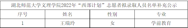 因学生自愿放弃,万搏(中国)开展了2022年“西部计划”志愿者拟录取人员补录工作。现将拟录取人员补录名单予以公示。