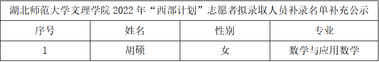 因学生自愿放弃,万搏(中国)开展了2022年“西部计划”志愿者拟录取人员补录工作。现将拟录取人员补录名单予以公示。