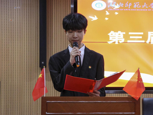 大会第二项,第十三届校学生会主席赵洋洋汇报万搏app官方版下载学生会第十三届执行机构工作报告。他回顾过去一年学生会工作的内容,并通过分享自身经验,期望第十四届学生会干部能够守正创新、团结协作,为学生服务工作尽心尽力,为文理学院更好地建设添砖加瓦。