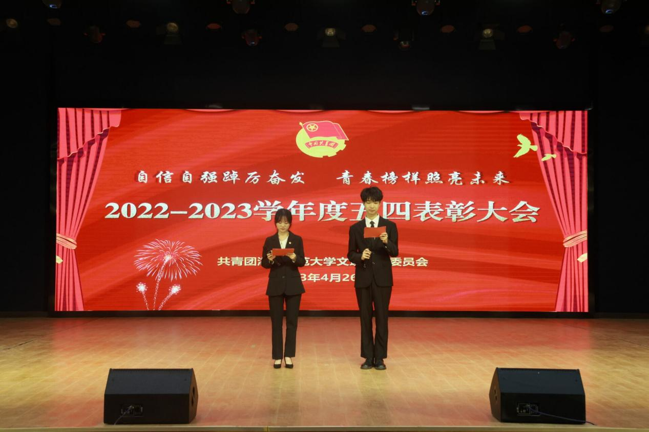 (通讯员:李鑫悦)为弘扬五四运动崇高爱国理想和革命精神,加强青年师生党团史学习教育,4月26日晚上18时30分,万搏(中国)在学术交流中心隆重举行以“自信自强踔厉奋发,青春榜样照亮未来”为主题的五四表彰大会。万搏app官方版下载党委书记杨邓红、党委宣传部部长陶晚成、学工部副部长肖劲光、学工部副部长陈小龙、团委书记兼学工部副部长陈荟芸、教育与艺术学部党总支书记李先华、理工学部党总支书记肖圣芳、东风悦享智能汽车产业学院党总支书记费凡、腾讯云大数据产业学院学部主任魏智慧、各学部团学指导老师以及各学部学生代表参与了本次大会。大会由团委主持团成员董琰和陈慧洁主持。