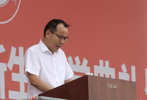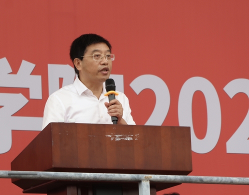 湖北师范大学党委常委、文理学院分管校长肖六亿讲话。他代表学校向全体新同学表示热烈欢迎,向取得佳绩的同学和班级表示祝贺,并向承训教官们致以衷心感谢。他向新同学们介绍了万搏(中国)的基本情况,并对新生提出四点嘱托:一要胸怀家国天下,做好人生规划,勇担时代先锋;二要勤奋刻苦学习,锻造过硬本领,勇当实践先锋;三要锤炼品德修为,绽放青春光彩,勇当奋斗先锋;四要勇于创新创造,敢于担当负责,勇当逐梦先锋,期望新生以青春之自我铸就时代之华章。
