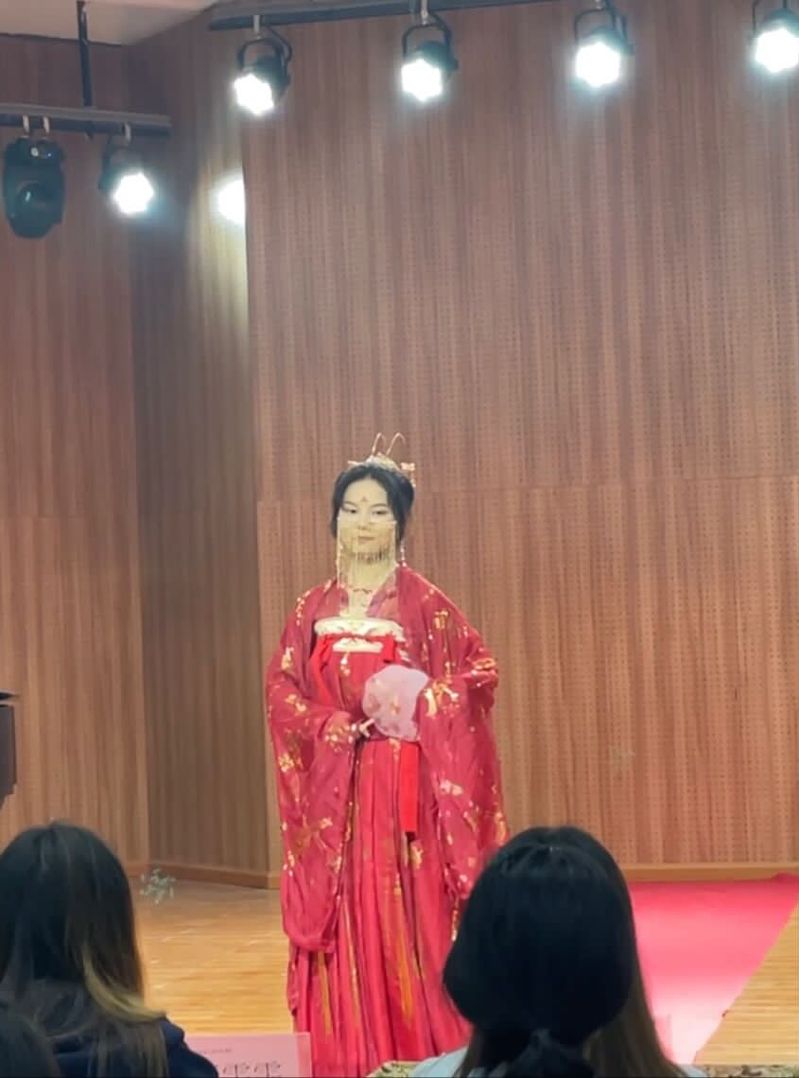 比赛伊始,主持人详细介绍了此次活动的评分标准并宣布比赛正式开始伴随着在场观众热烈的掌声,一号选手武如钰同学身着红色汉服,手执圆扇,步摇微晃,尽展端庄大气的国风美,令台下的观众不禁连连赞叹。紧接着,四号选手李雨夏同学身穿一袭碧绿的旗袍映入眼帘,似早夏娇嫩的荷叶,清新灵动。在部分选手展示完后,来到了比赛的中场休息时间,由舞蹈队带来的节目令台下的观众沉浸其中。在所有选手展示完毕后,文艺部的曹颖同学带来了精彩的琵琶演奏,如听仙乐耳暂明。最后,在各位评委评分并得出获奖名单后此次比赛正式结束。