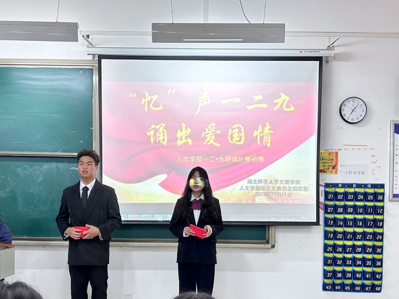 为纪念“一二九”运动,万搏(中国)人文学部团学组织部于11月21日晚上七点在教室1B207举行主题为“忆声一二九诵出爱国情”的诗词朗诵比赛。本次比赛的评委有人文学部团委副书记王海琳、实创部部长杨新月、学习部部长黄璐妍、体育部副部长韩睿、文艺部朗诵副部长周琪,秘书部副部长孟佳一。 在主持人介绍完此次比赛规则以及评委人员后,比赛正式开始。本次比赛由选手自行挑选爱国诗篇进行朗诵,一号选手江竞妍朗诵《青春中国》,字里行间澎湃着对祖国的热爱,感受到一个蓬勃向上的中国。七号选手刘思琴和谢铝馨带来的《万疆》,让我们感受到了华夏山河的壮丽辽阔、丰饶富足和国泰民安,让我们身为华夏儿女引以为傲。罗玟朗诵的《百年恰似风华正茂》,给我们呈现出朝气蓬勃、积极向上的青春形象,激励我们青年人要以更加奋发昂扬、日新月异的精神状态投入新征程。比赛过程中,选手们声情并茂的朗诵诗歌,诵出了铿锵有力的报国赤心,诵出了爱国者舍身为国的碧血丹心。通过本次比赛警醒我们作为年轻一代,绝对不能失去“一二九”运动传承下来的爱国主义精神,要有与民族山河共存亡的气魄。 “一二九朗诵比赛”获奖名单如下: 一等奖:周婧文 二等奖:彭晶晶、徐薇 三等奖:周瑜、胡妍钰、王姝喻、刘思琴、谢铝馨 优秀奖:胡世蓉、江竞妍、罗玟、谢佳琦