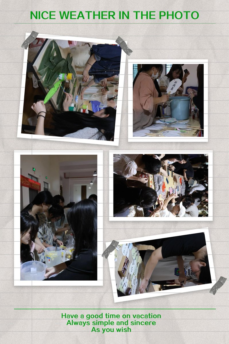 本次市集分为:非遗漆扇、古法香囊、粽叶飘香、传统书签、创意海报等多个“摊位”,让同学们深切感受到传统节日的独特魅力。