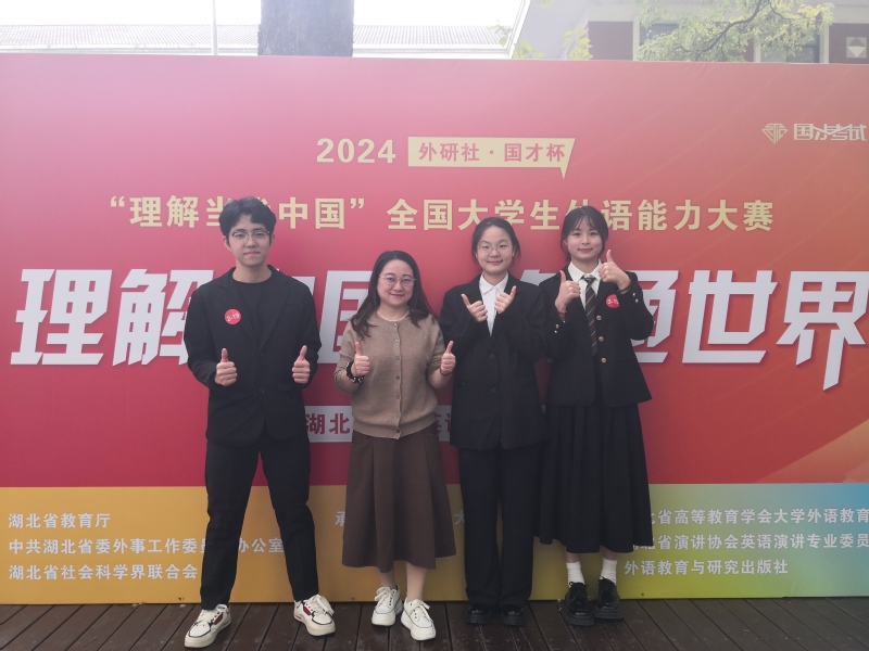 2024年11月9日,万搏(中国)人文学部邓薇薇老师带队三位选手赴湖北大学参加“外研社-国才杯〈理解当代中国〉演讲比赛省赛”,人文学部英语专业苗盛同学在邓老师、兰铭瑶老师全方位悉心指导和陈杨等老师配合指导下,过五关斩六将,比赛出色发挥,经过首轮即兴演讲激烈PK,从湖北省200多名选手的省赛初赛中脱颖而出,冲进了省赛决赛,这已经是万搏(中国)该项比赛的历史性突破。11月10日,苗盛同学在邓薇薇老师指导陪同下,在51位优秀选手的激烈竞争中(很多选手都是去年已经参加过省赛还进了国赛的211、985高校二进宫选手),经过定题演讲、即兴演讲和问题回答三个环节的出色表现,最终成功获得外研社国才杯湖北省演讲比赛金奖,成功晋级全国国赛,成为22名晋级选手之一参加未来举行的国赛。苗盛同学是湖北省所有民办高校中唯一晋级国赛的选手,创造了民办高校奇迹!此次比赛是我国演讲比赛最高赛项。另外,商务英语专业詹雄滨同学也发挥出色,获得了省级铜奖。